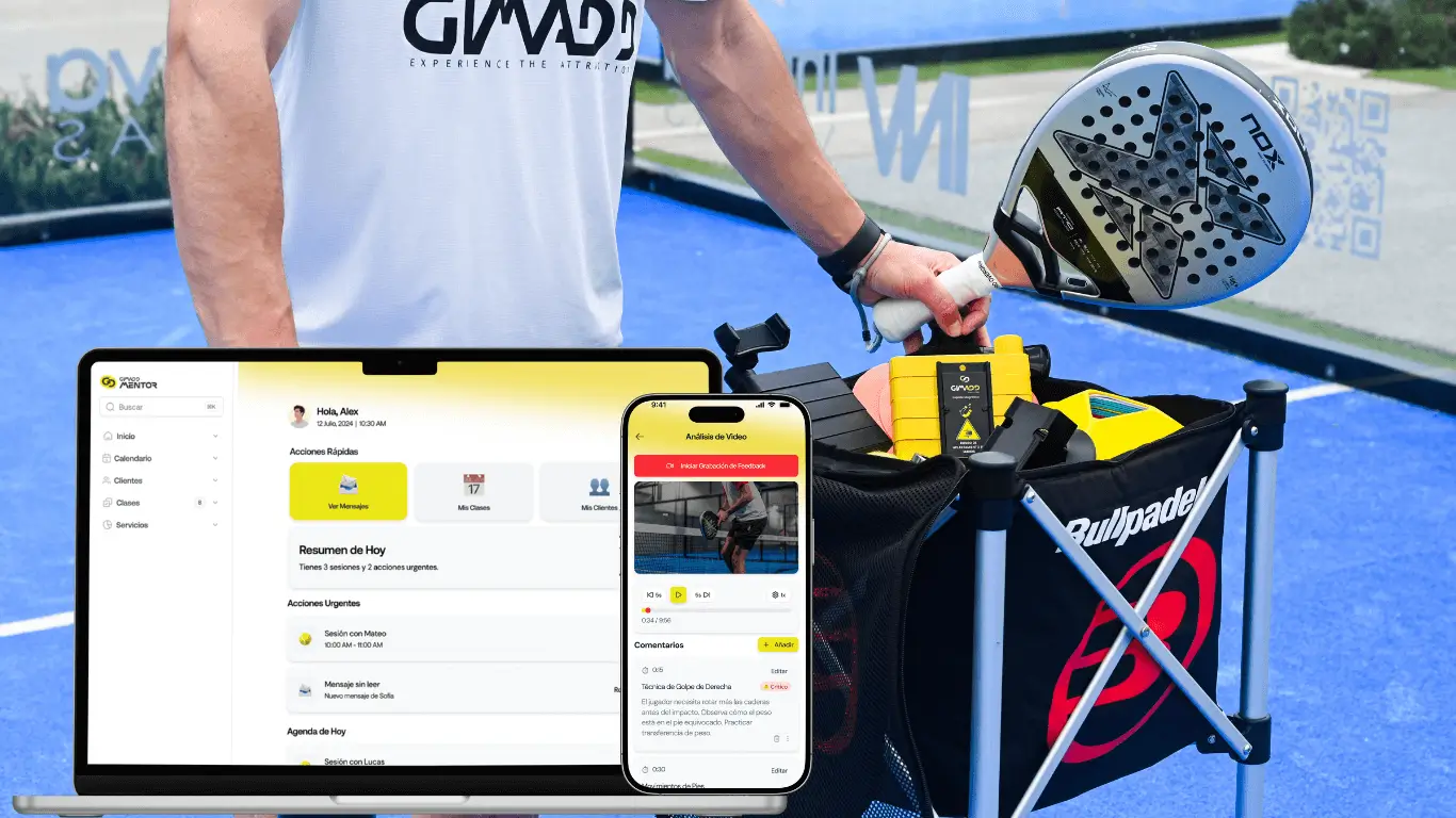 Gimadd Mentor une a entrenadores y jugadores en una plataforma digital para gestionar, analizar y mejorar el entrenamiento de pádel de forma más moderna y eficiente.